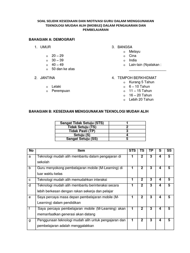 Soal Selidik Kesediaan Dan Motivasi Guru Dalam Menggunakan Teknologi Mudah Alih Pdf